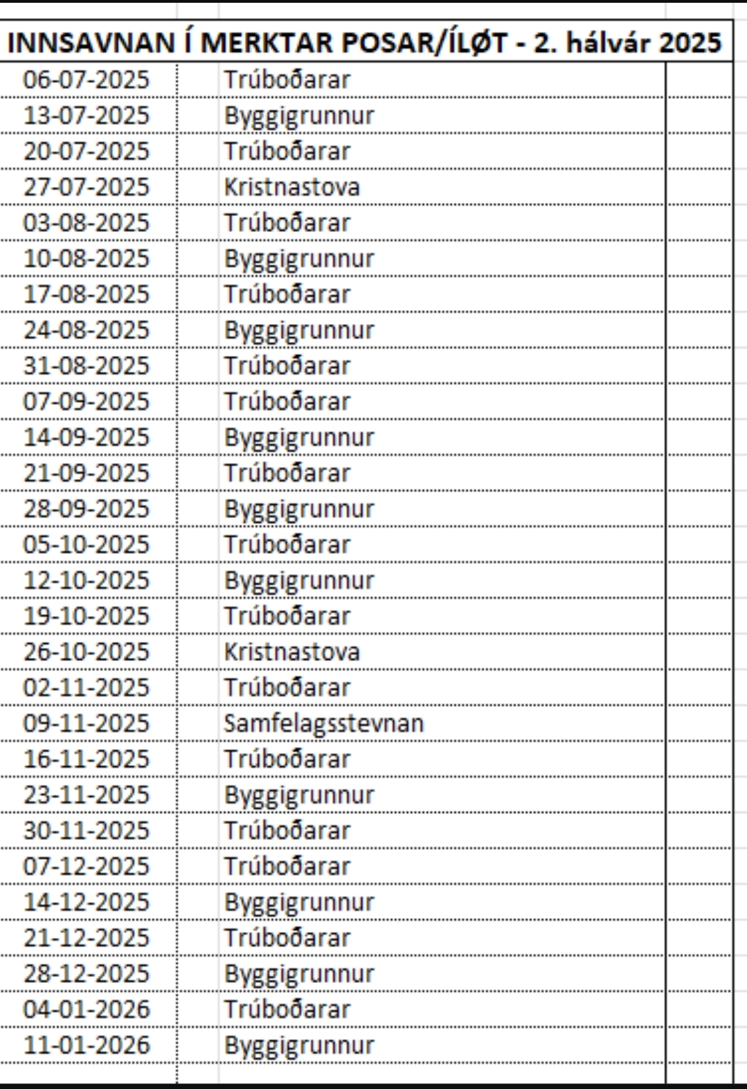 Innsavnan fer fram sunnumorgun á morgunmøtinum, har reiður peningur kann lastst í íløt. Til ber eisini at flyta pengar inn á hesar kontur í Betri Banka: